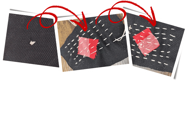 The beginning of a visible mend on an item you bring from home (e.g., jeans, jacket).